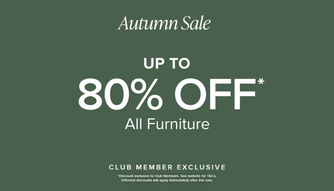 Autumn Sale. Up to 80% off all furniture for Cub Members.