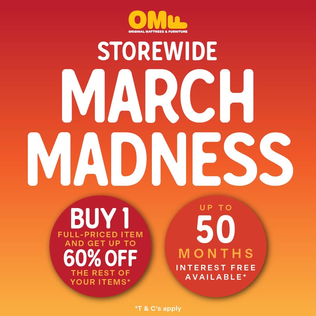 March Madness has hit OMF and how good does this deal sound! Buy 1 full-priced item and get up to 60% off the rest of your items*