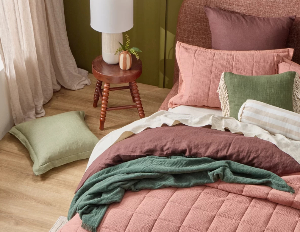 Layering the Manchester - Autumn bed is all about layers. Start with a high-quality cotton or bamboo sheets, add your quilt, and then layer a runner at the foot of the bed.