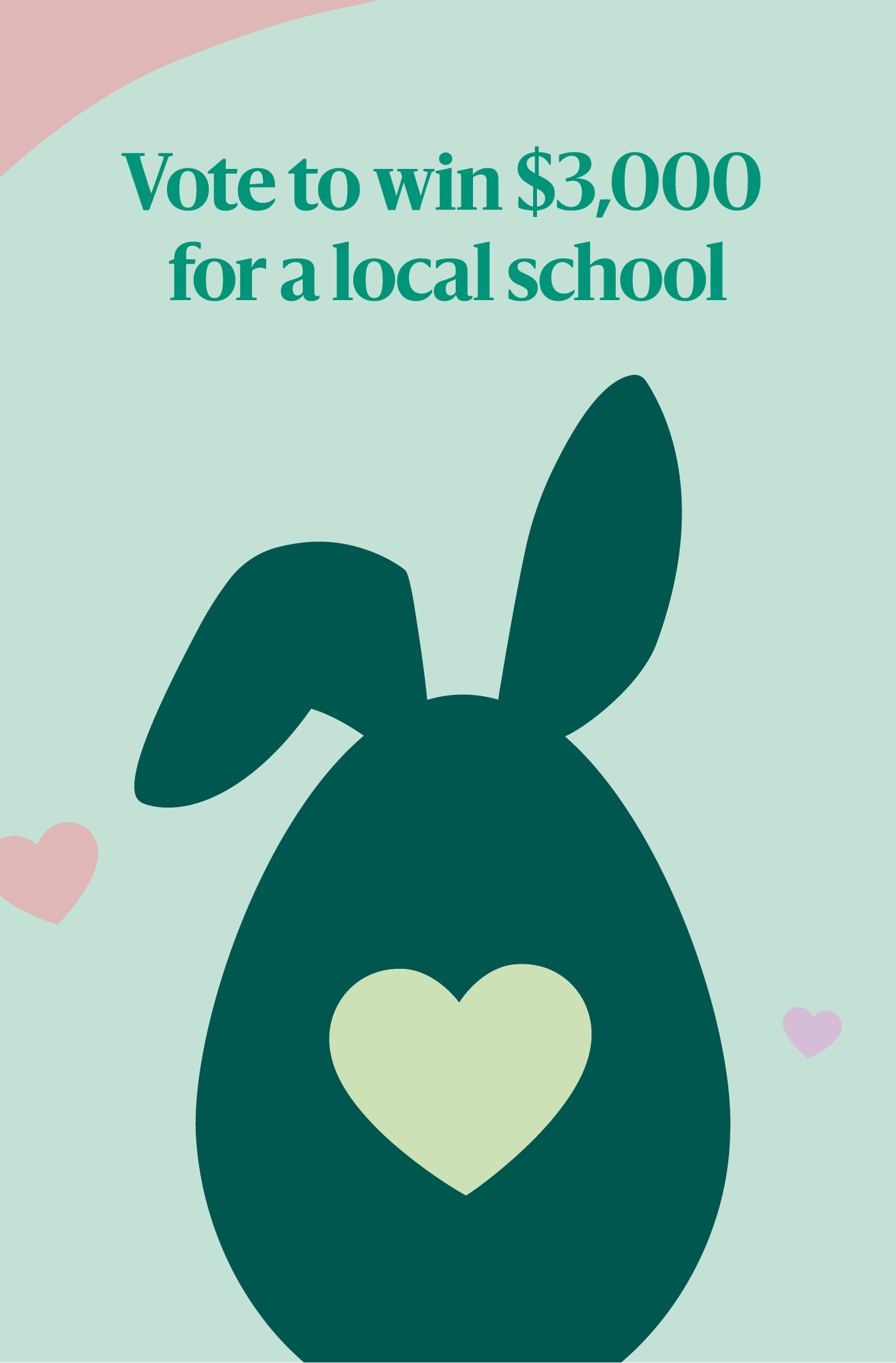 B) Vote for your favourite bunny from one of three schools below:- Inspire Early Learning Journey Springvale
