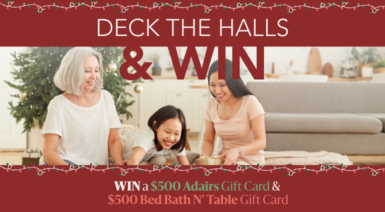 Sign Up for your chance to WIN a $500 Adairs Gift Card & $500 Bed Bath N' Table Gift Card!