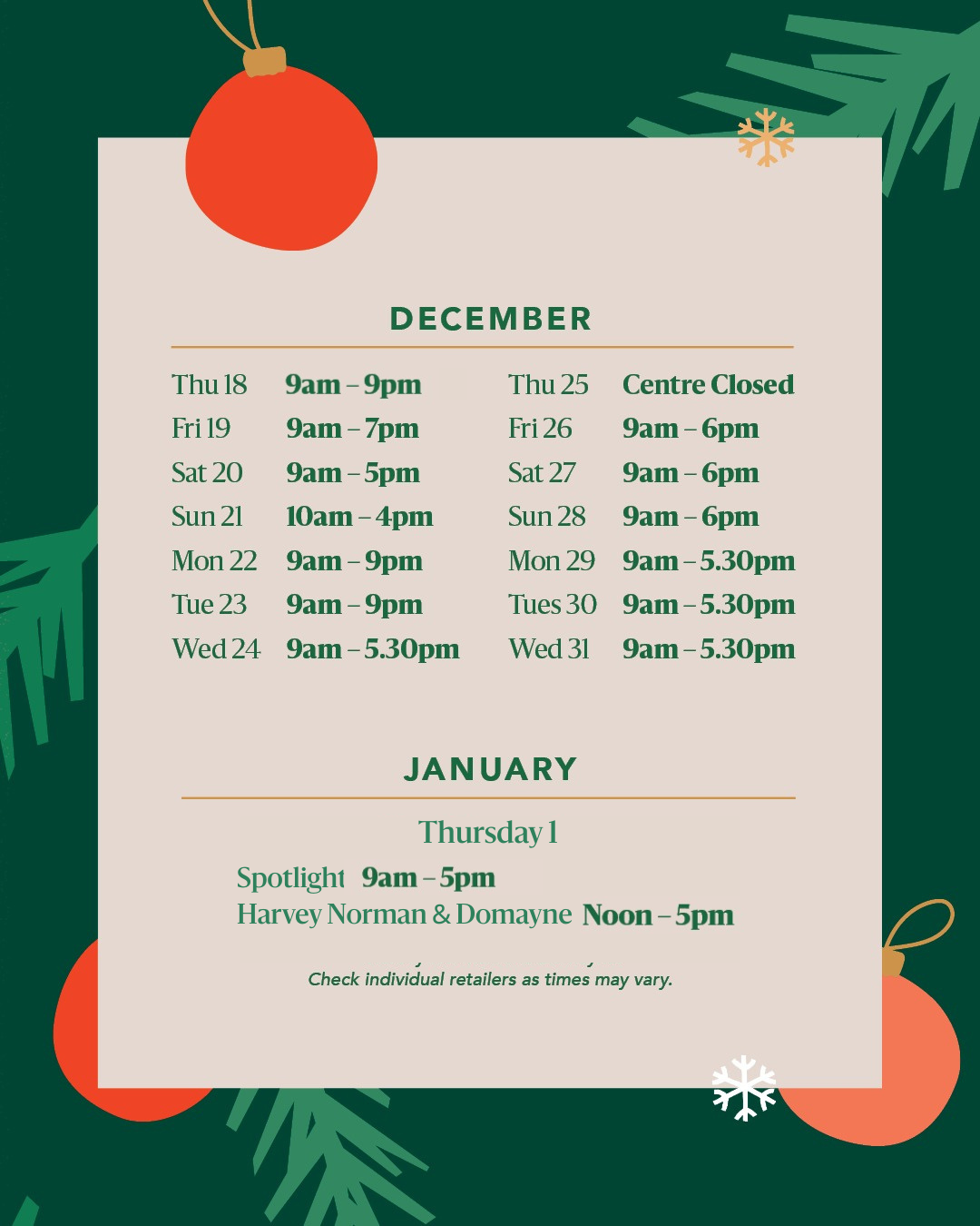 Festive Trading Hours