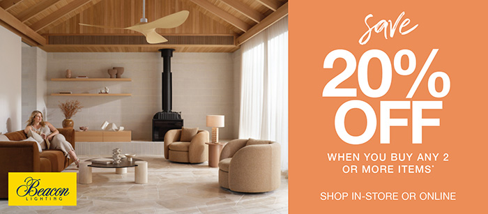 Create a relaxed and refined atmosphere with new Australian lighting and fans, designed for effortless entertaining.